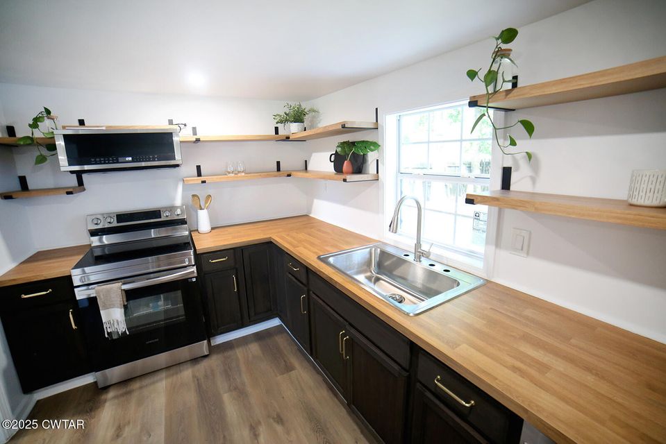 • Updated kitchen with sleek countertops & plenty of cabinet space